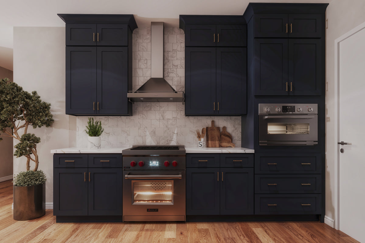 Navy blue kitchen cabinets bring a bold and luxurious feel to your space. When paired with gold hardware or white countertops, the result is stunning. This combination is ideal for those who want a classy, high-end look.